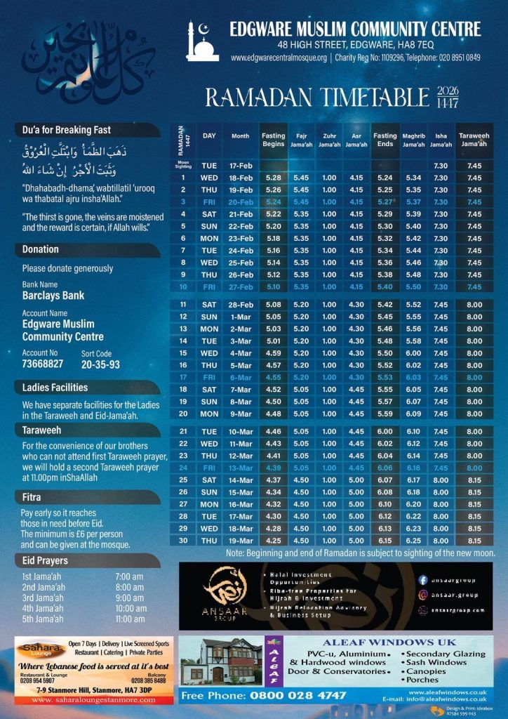 π Click mosques below to view their Ramadan prayer timetable + essential info!
